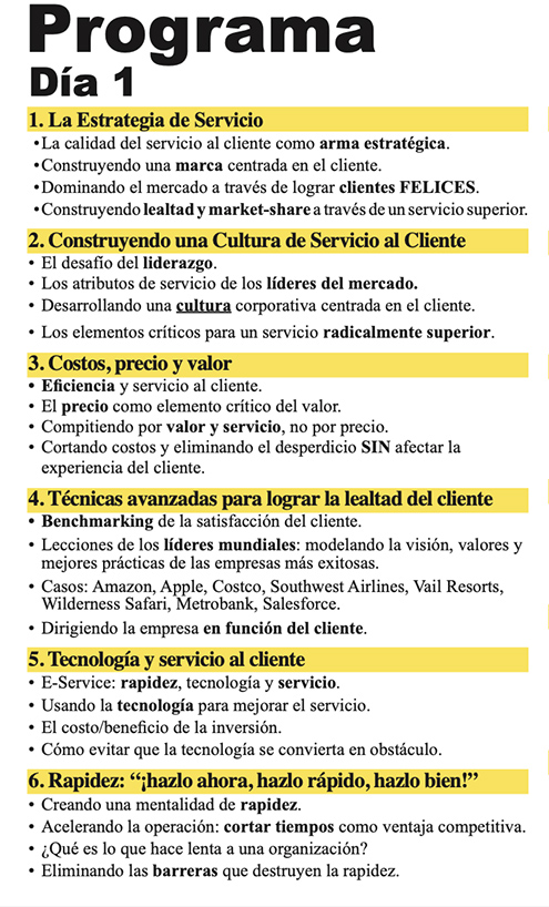 - Cómo implementar en su empresa las mejores prácticas de servicio de los líderes mundiales.