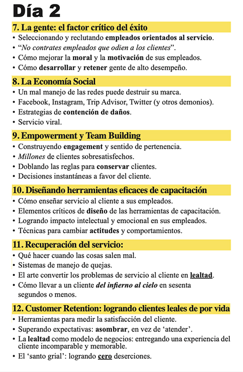 - Cómo capacitar y desarrollar a todos sus colaboradores para que puedan entregar un servicio de clase mundial a sus clientes.